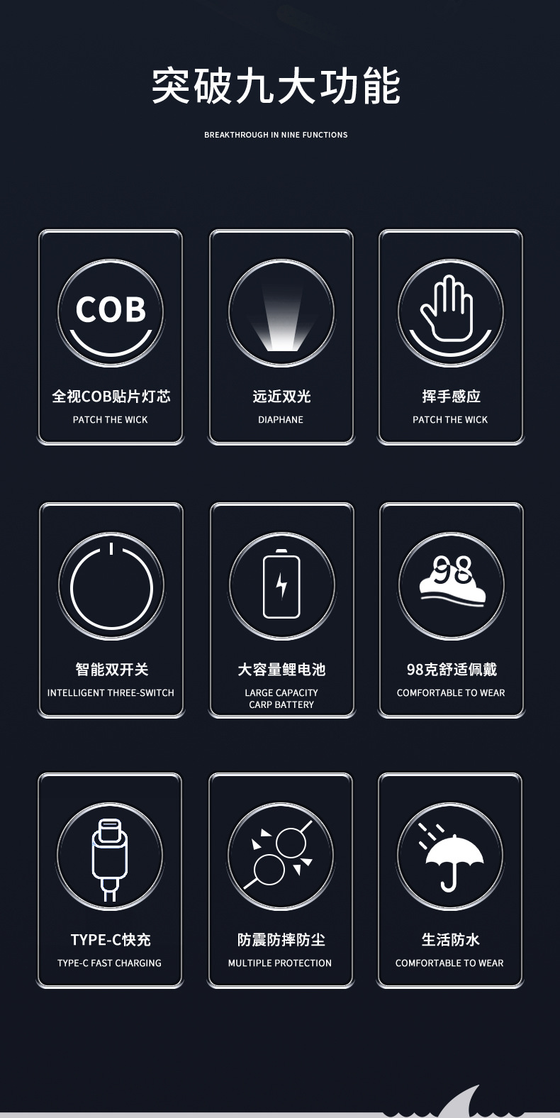 COB LED Headlamp USB Rechargeable Headlight Torch Work Light Bar Head Band Lamp